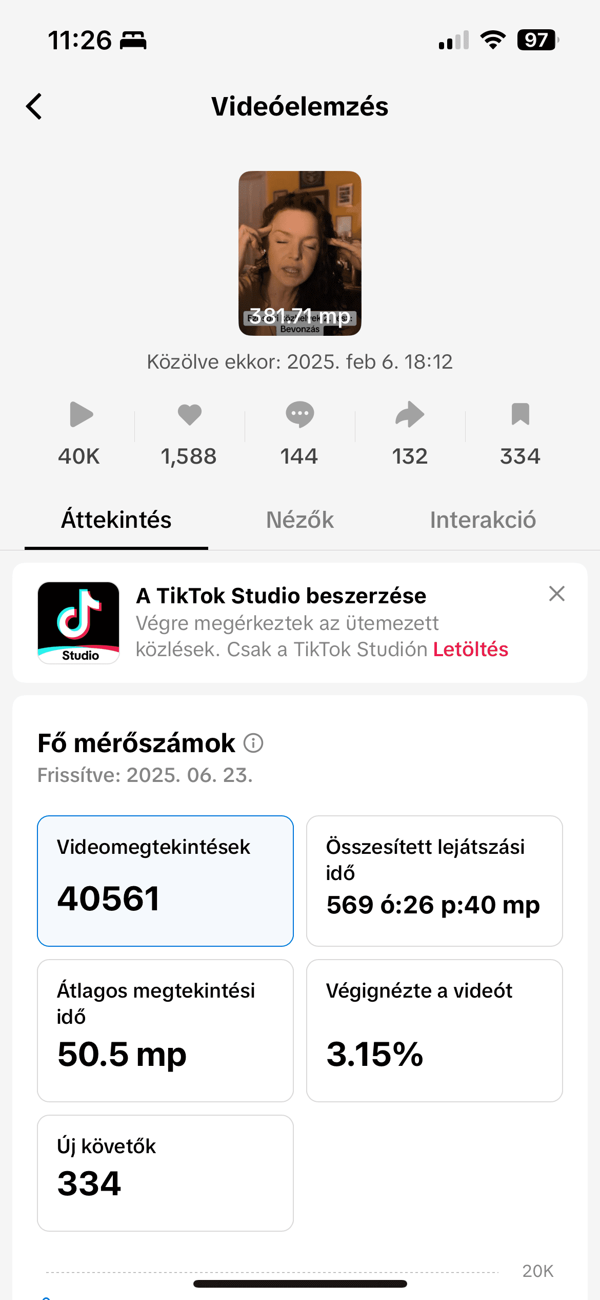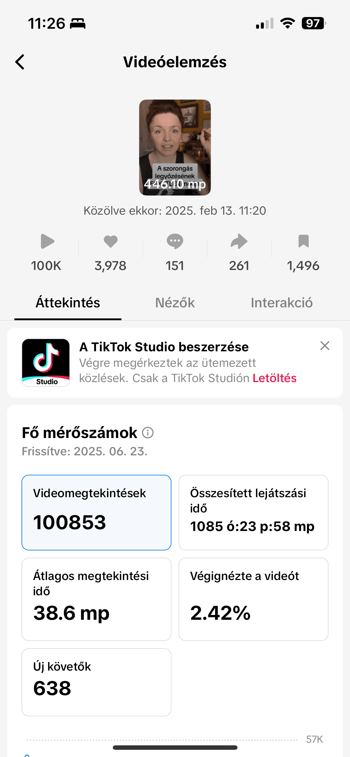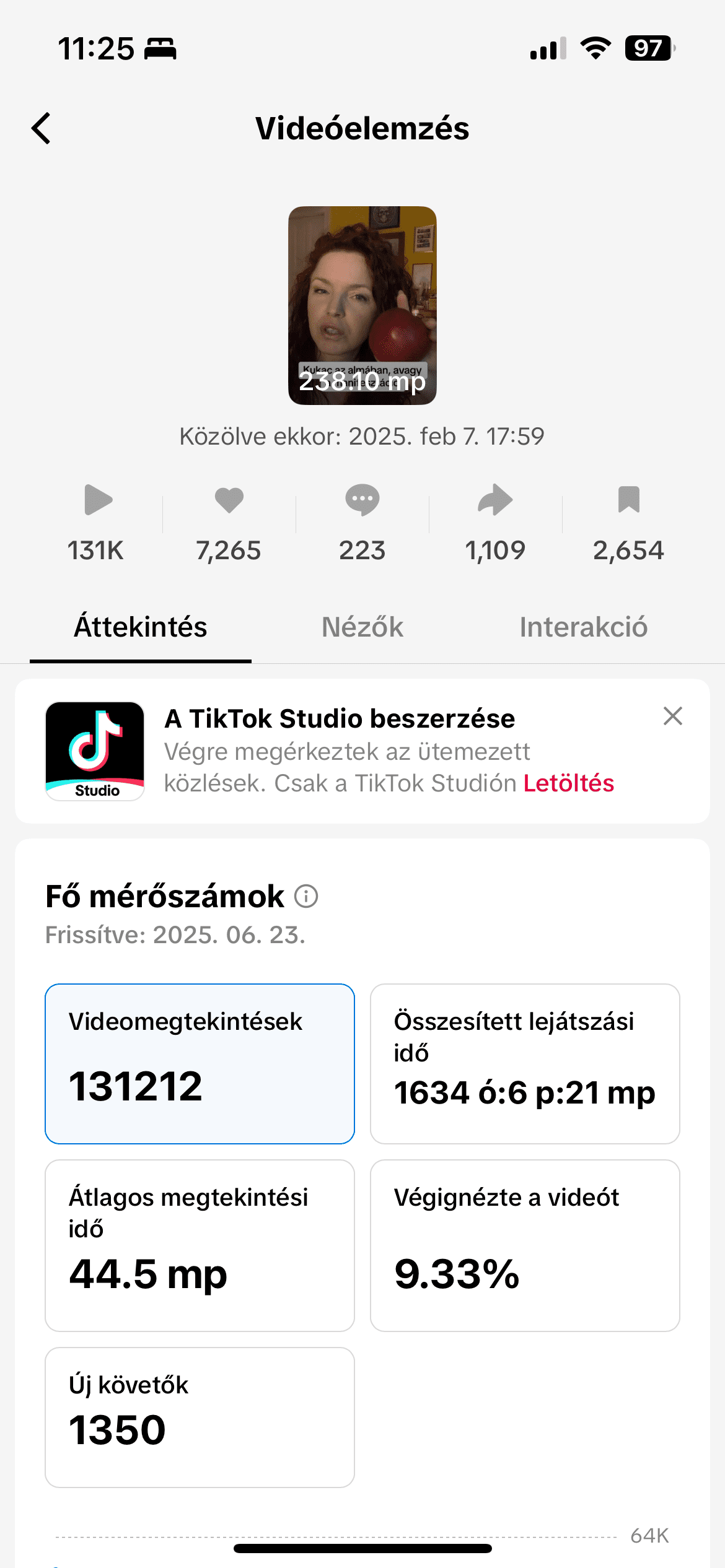 A képeken néhány videóm statisztikáját láthatod. Ezek a számok nem a véletlennek vagy a szerencsének köszönhetőek, hanem a tudatosságnak, az intuitív kísérletezésnek, a történetmesélés erejének, az átgondolt szerkesztésnek és a témaválasztásnak. És a legfontosabbnak, amiről a workshopon is szó lesz: annak, hogy az emberek nem azt szeretik, ami tökéletes, hanem azt, ami valódi.